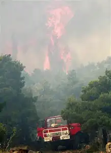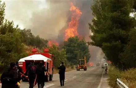 Лесной пожар близ Коринфа (п-в Пелопоннес). (AP Photo)