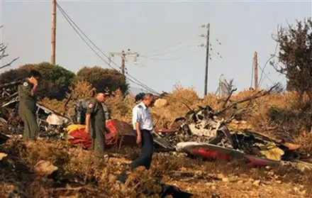 Пожарный самолет врезался в дыму в склон горы на о. Эвбея, Греция; оба летчика погибли. (AP Photo)