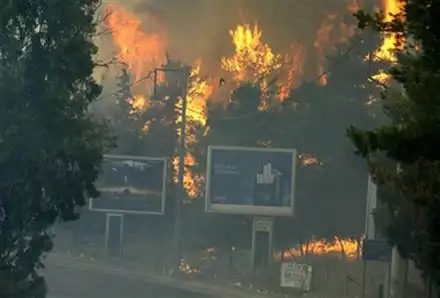Лесной пожар достал территорию электроподстанции в Фессалониках на севере Греции. (Photo AFP)