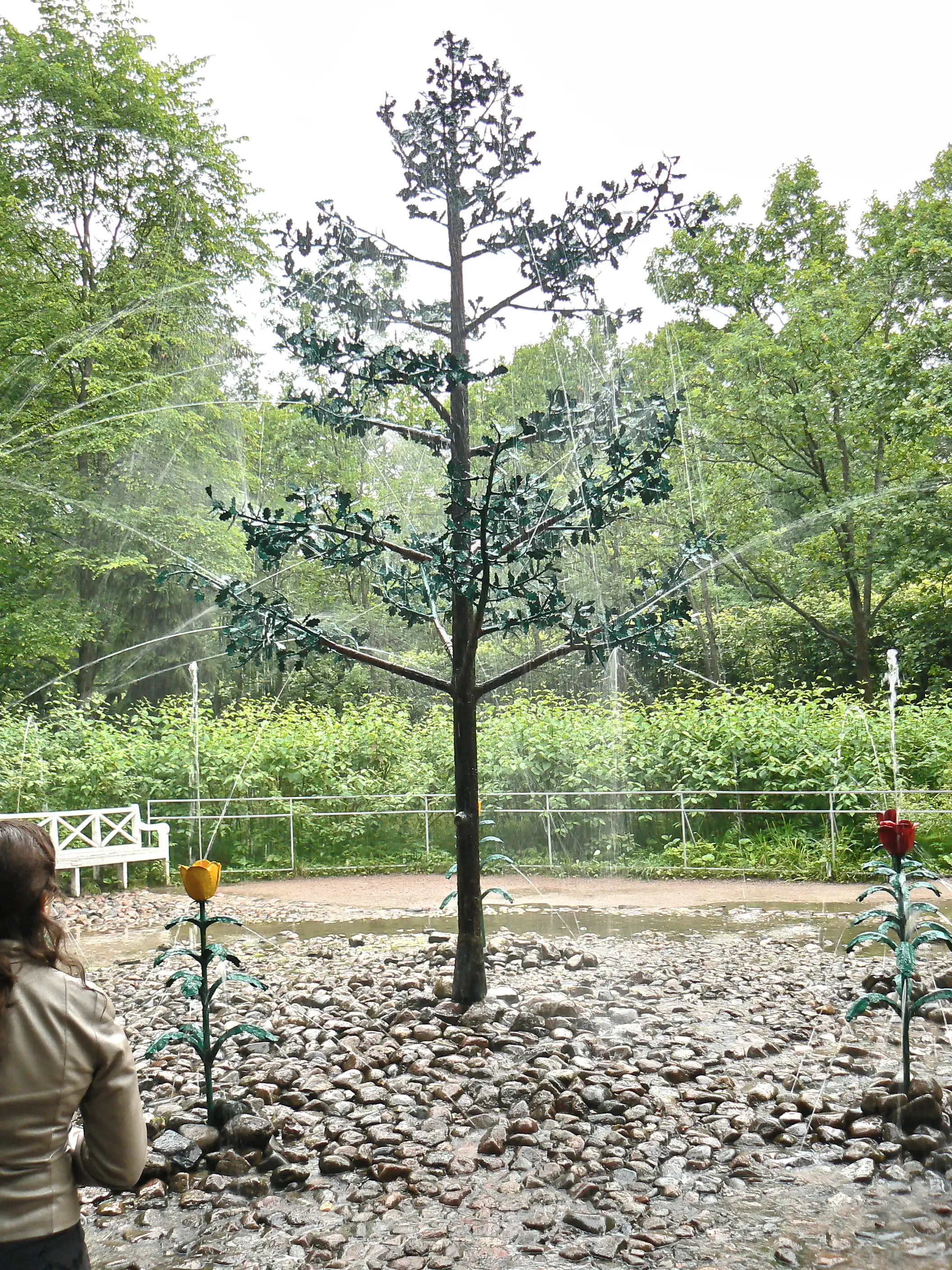 Вокруг этого дерева стоят фонтаны, которые включаются, когда проходишь рядом с ними.