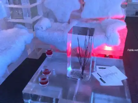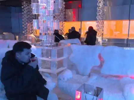 Уникальное кафе в Дубаи призвано охладить туристов в невыносимую жару. Когда температура на улице в тени достигает 44 градусов в помещении кафе она держится на -6. Вход для туристов платный и стоит 17 долларов. Изо льда сделано абсолютно все, вплоть до стульев и украшений интерьера.