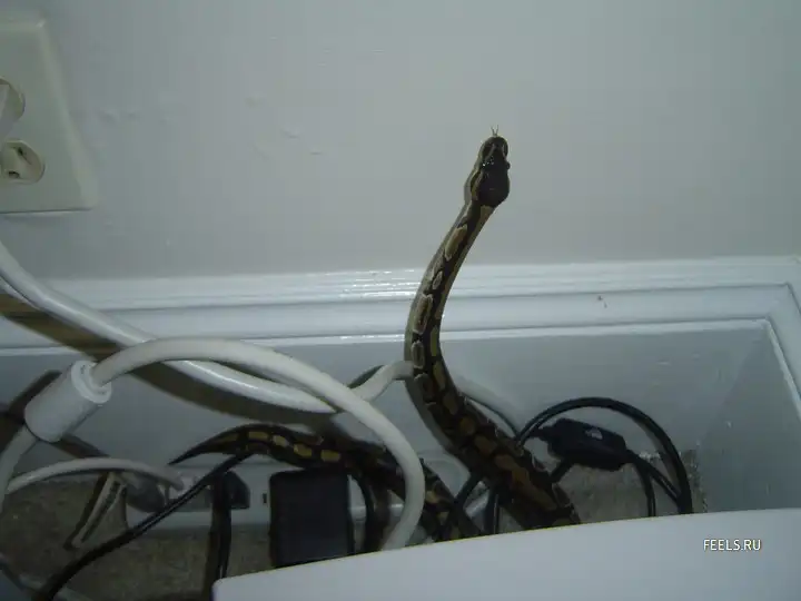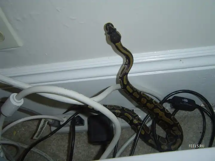 Что-то странно шевелилось за компьютером. Пришлось посмотреть. Парень не растерялся и сфотографировал.