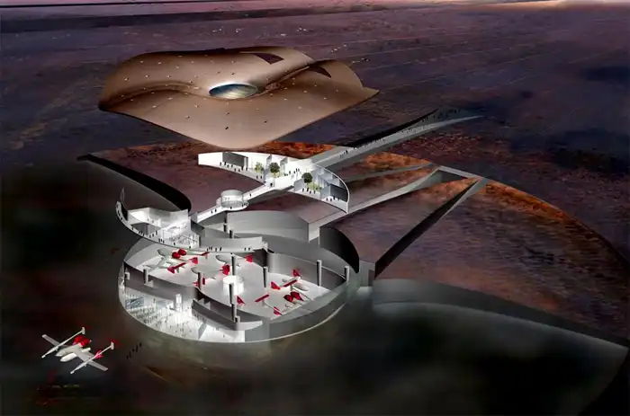 Архитектурное бюро Foster + Partners выиграло международный тендер на строительство первого в мире частного туристического космопорта The New Mexico Spaceport Authority Building или Spaceport America.