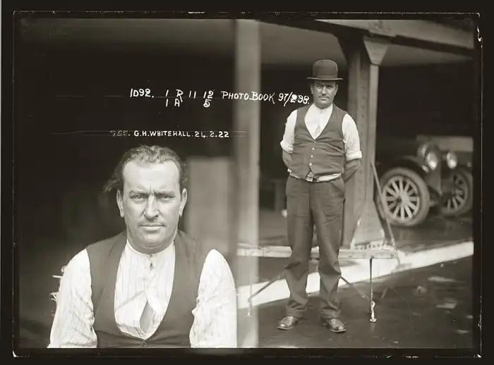 Джордж Уайтхолл, плотник. Добровольно сдался в полицию Newtown после того как насмерть зарубил его неофициальную жену, Иду Паркер. Это произошло в четверг 21 февраля 1922, в их доме.