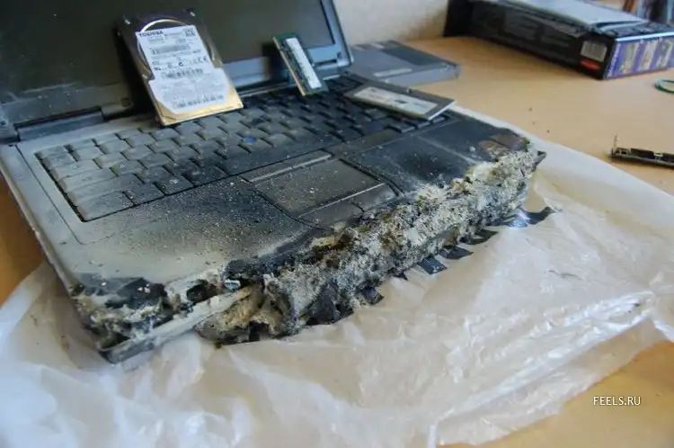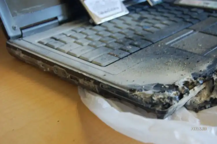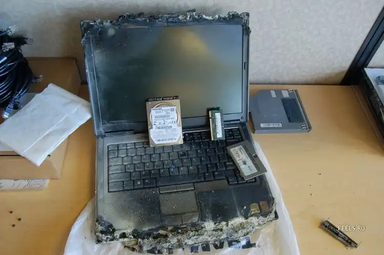 У молодого человека произошел казус с ноутбуком. В общем, у него взорвалась батарея.