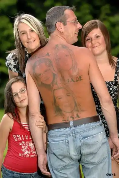 Короче говоря он решил сделать сюрприз жене и сделал себе татуировку своей жены и дочерей.