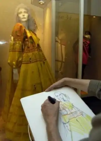 Художник рисует исламскую модель одежды на одном из показов.