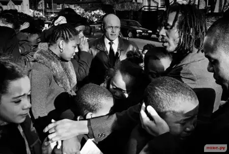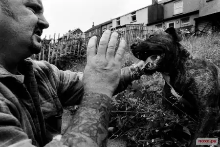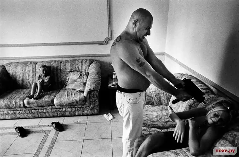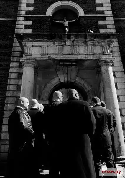 "Серия фотографий Джослина Бэйна Хогга - шокирующая хроника жизни современных гангстеров. "Я быстро понял, - говорит Хогг, - что это целый мир, о котором ничего неизвестно". Работа над проектом продолжалась два года. На черно-белых снимках запечатлены развлечения, похороны, любовные сцены тех, кого, казалось бы, в настоящее время точно не может быть. Тем не менее они существуют."