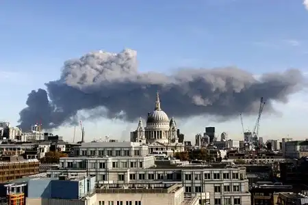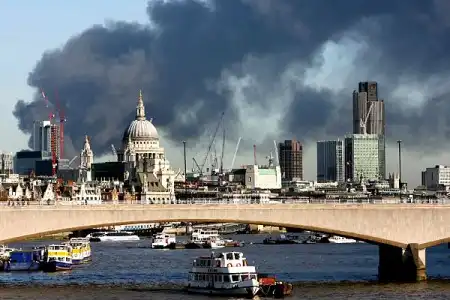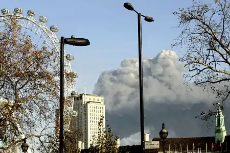 Британские СМИ сообщают о пожаре на востоке Лондона, который возник в том месте, где планируется построить спортивные объекты для летних Олимпийских игр 2012 года. Сейчас эта территория занята заводскими постройками. Огромный столб чeрного дыма виден за много километров. Кое-где он заслонил солнце, и Лондон накрыла гигантская тень. Инцидент произошел около 12:00 по местному времени на улице Уотерден — горит автобаза, где находятся большие запасы дизельного топлива.