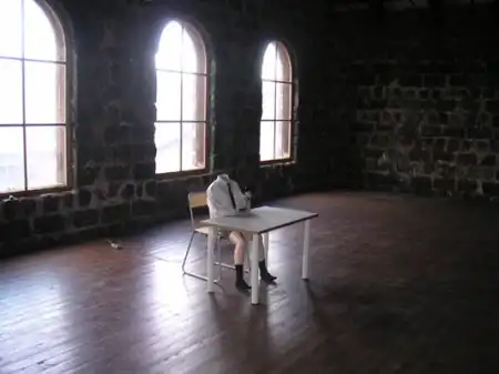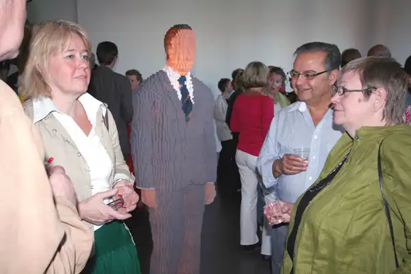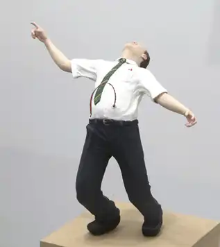 Его новая работа – это пиксельный человек, офисный работник в человеческий рост, собранный из cтеклянных кубиков размером в один сантиметр, раскрашенных акриловой краской.