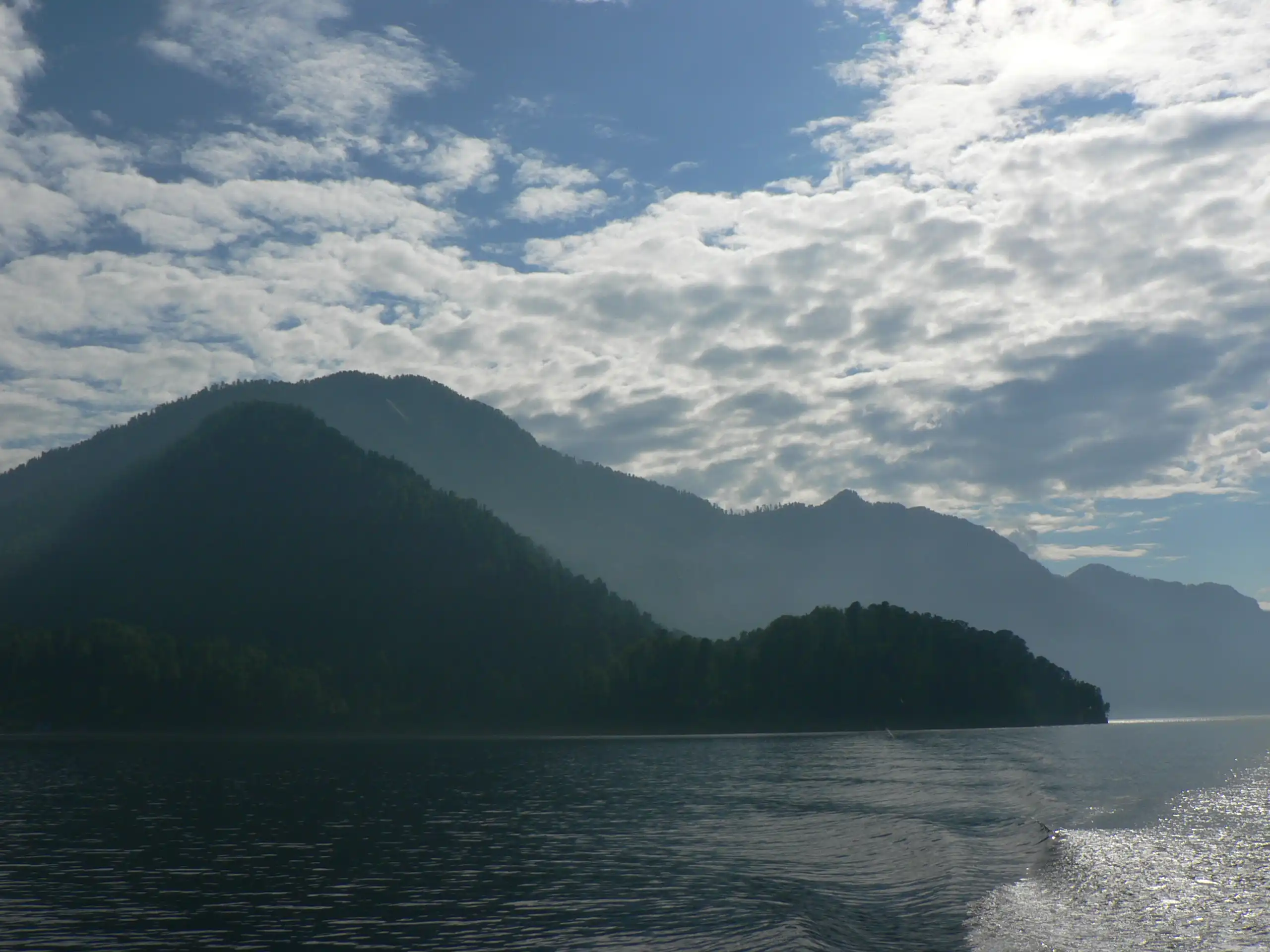 Телецкое озеро 2006 год.Самая высокая температура воды в августе +5 С.Длнна озера 77км.,максимальная ширина 3 км.
