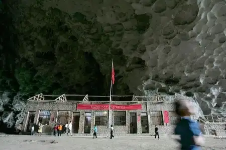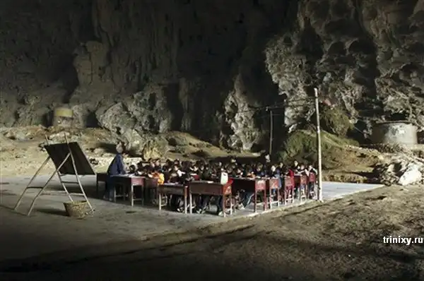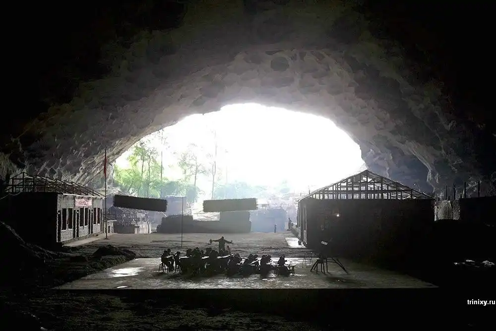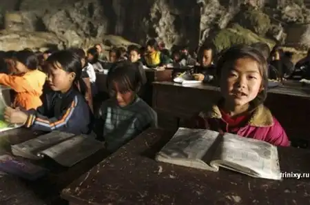 Когда Николай Носов писал своего "Незнайку на Луне", он, думаю, и не подозревал, что в южной провинции Китая Гуйчжоу есть люди, у которых тоже над головами не небо, а каменная твердь. Целая деревня, в которой люди народности мяо живут уже более 150 лет, находится внутри гигантской пещеры длиной в 230 метров. Здесь и жилые дома, и школа, ученики которой занимаются под "открытым" небом.