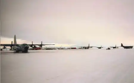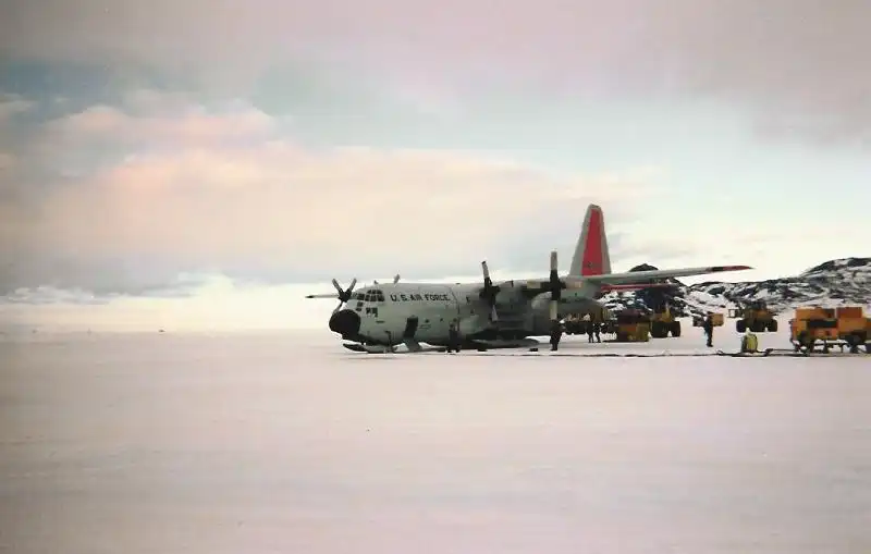 В рамках операции "Deep Freeze", армия США перебросила пол дюжины военно-транспортных самолётов С-130 "Геркулес", на лыжном шасси, которые осуществляли посадку на ледяные взлетно-посадочные полосы, на научно-исследовательскую базу США Амундсен-Скотт.