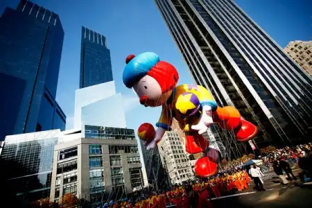 Более трех миллионов жителей и гостей из других городов Америки вышли вчера на улицы Нью-Йорка, чтобы увидеть красочный парад по случаю Дня Благодарения (Thanksgiving Day). Этот парад знаменит тем, что основным зрелищем на нем традиционно являются гигантские воздушные шары, изготовленные в форме любимых американскими детьми персонажей мультфильмов и комиксов. Cеть универмагов Macy´s проводит Thanksgiving Day Parade с 1920-х годов.