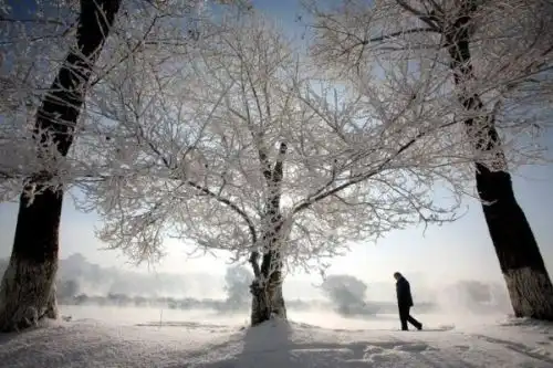 На фотографии запечатлен парк после сильного снегопада в северо-восточной провинции Цзилинь (Jilin) в Китае.