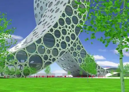 Спроектировано оно в форме иероглифа «ren», что в переводе означает "люди".