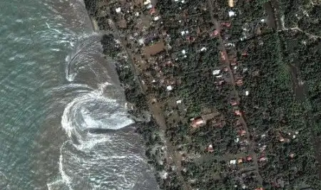 Это побережье Шри-Ланки 26 декабря 2004 года в момент наступления разрушительного цунами…