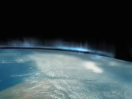 Фотография, поразительного и похожего на приведение, природного явления, известного как северное сияние Авроры. Взята с борта шаттла «Атлантида» после 117 полета.