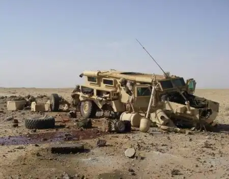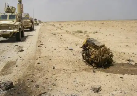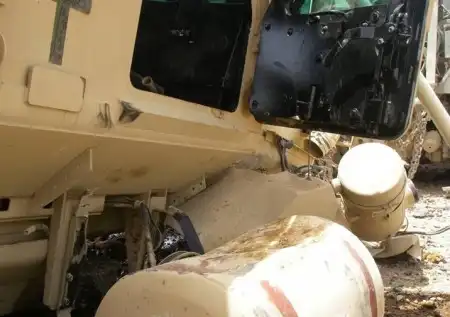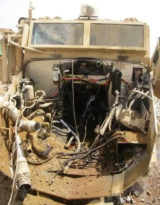 Эта новая машина оправдала свои затраты.Она подорвалась на фугасе мощностью 500 фунтов тротила и все остались живы(водитель получил перелом нескольких ребер)