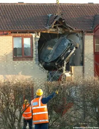 В британском городе Петербург (Peterborough) водитель на автомобиле Volvo, пролетев на машине по воздуху около 30 метров, пробил стену квартиры на втором этаже жилого дома.