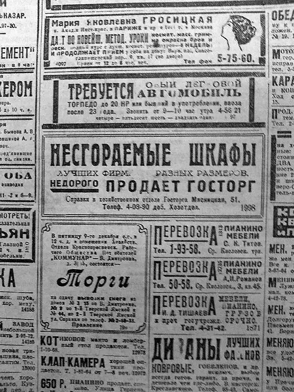 Объявления из старых газет