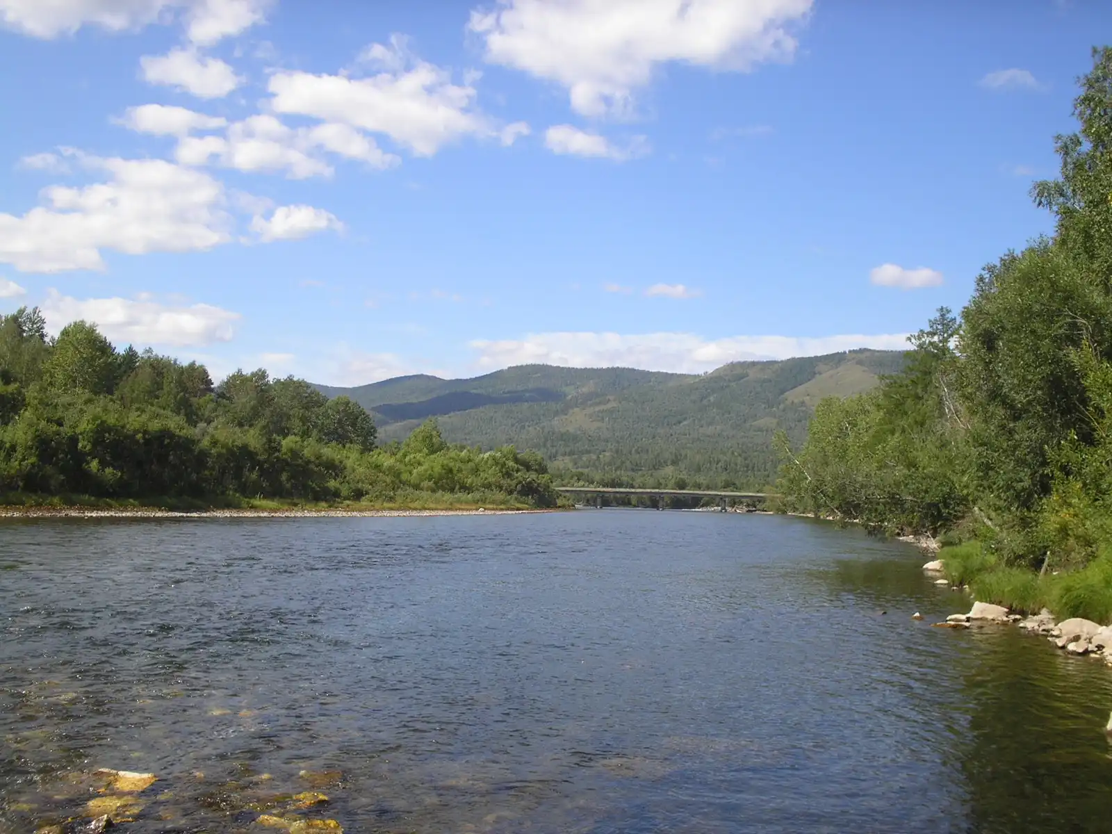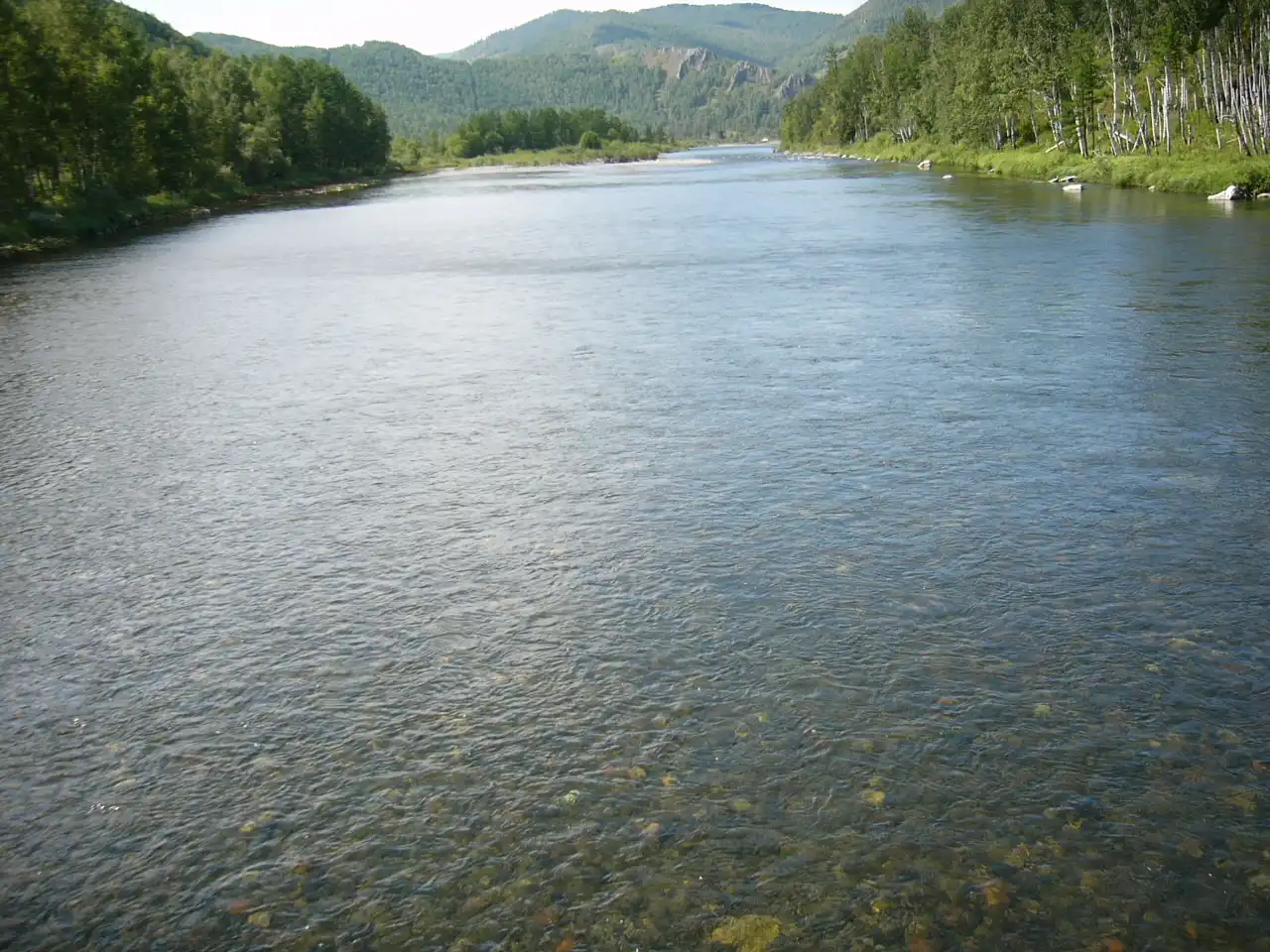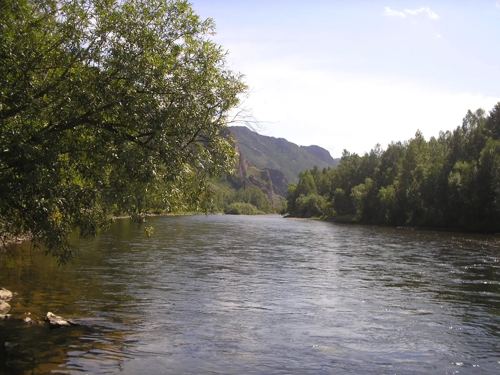 Эту милую речку зовут Белый Июс. Есть ещё и Черный, она протекает через всю Хакасию. Обе эти реки являются фактически началом Томи. Ну а где протекает Томь, я полагаю нормальным людям пояснять не надо.. «Гламурщики» могут посмотреть по карте…