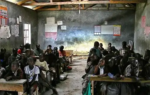Африканским детям объясняют правила обучения: умывайтесь, делайте домашнюю работу и приходите вовремя...