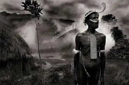 Один из вождей племени Дани в долине Бальем, Новая Гвинея. Племя было обнаружено во время Второй Мировой Войны...