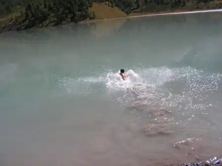 Которое питается, главным образом, из ручья, вытекающего с ледника горы Белуха!