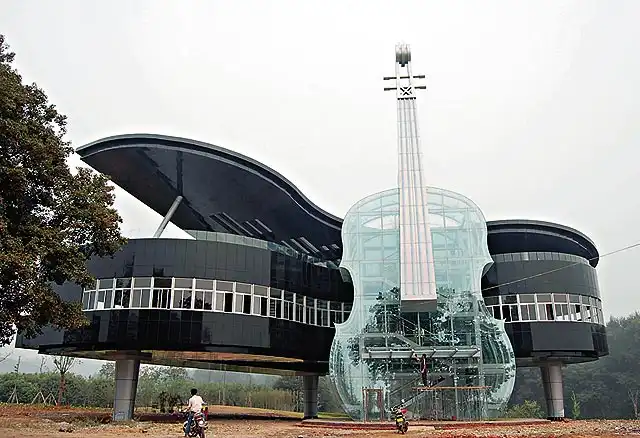 Это уникальное здание построили в Китае, в провинции Хи. Внутри скрипки устроен эскалатор и является главным входом в здание. К сожалению, не знаю для каких целей будет использоваться данное здание – рояль, но могу точно сказать, что оно радует глаз и очень подошло бы для музыкальной школы.