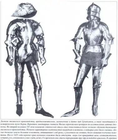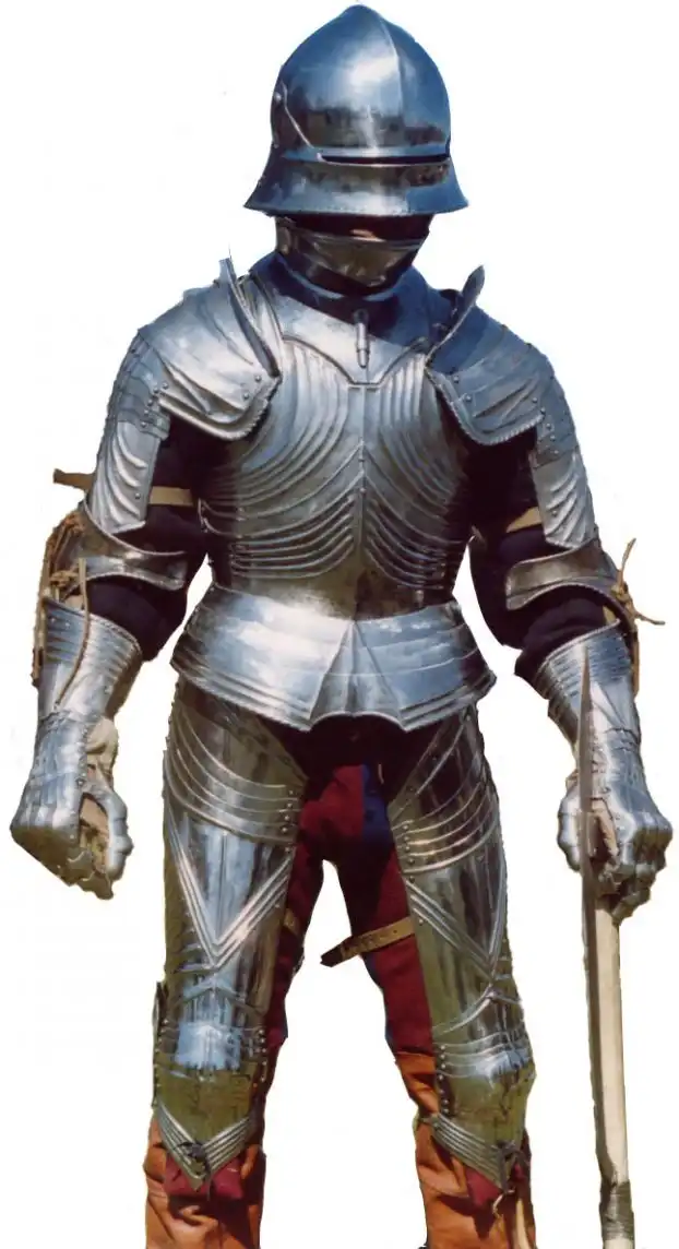 В XV веке появился полный доспех, где конструкция из больших сплошных стальных пластин повторяла строение человеческого тела.