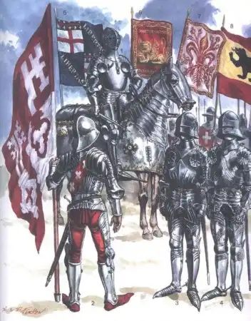 Рыцарь из ордонансных рот короля Франции Карла VII, около 1450 г.с личным штандартом короля.