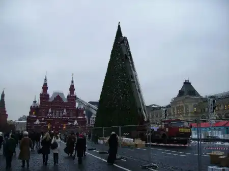 Монт=аж ёлки на Красной площади подходит к концу...