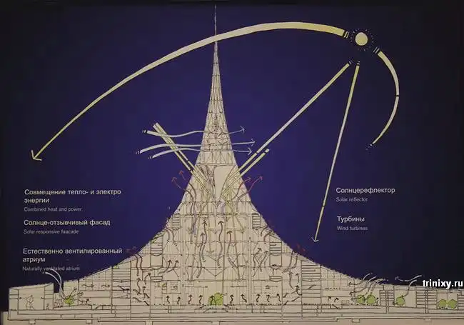 Сэр Норман Фостер продолжает шествовать по миру, создавая немыслимые архитектурные сооружения. При удачном расположении звезд, в Москве может появиться кристальный остров (Crystal Island), внешний вид которого будет ежедневно напоминать нам о Новогодних праздниках по вполне понятным причинам - стоит только взглянуть на внешний вид самого сооружения, строительство которого, предположительно, обойдется в 4 миллиарда долларов. Если охарактеризовать данную задумку одной фразой, то это должно быть что-то вроде "города внутри здания", который вместит 900 квартир, 3000 гостиничных номеров, международную школу на 500 учащихся, театры и кинотеатры, спортивный комплекс и многое другое. Если же взять во внимание тот факт, что разработчики, дизайнеры и идейные вдохновители постоянно создают какие-то инновации, можно предположить, что здание будет само обеспечивать себя электроэнергией, используя внешние панели солнечных батарей и ветряные турбины. На сегодняшний день это опять-таки очередной концептуальный план, материализация которого пока парит в воздухе.