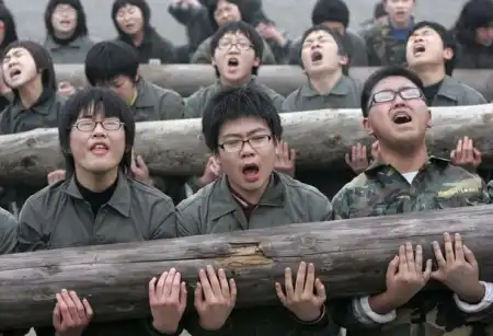 Южная Корея. Так корейские школьники и студенты укрепляют свой дух и тело во время шестидневного курса занятий в зимнем тренировочном лагере в 25 км от Сеула.