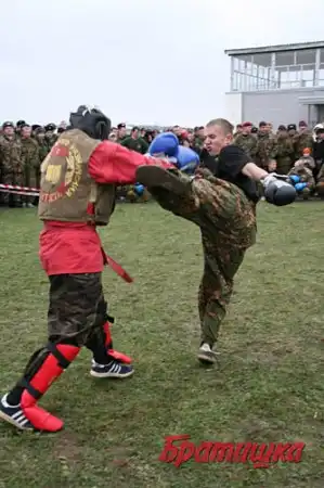 Все это не просто спортивные состязания, а серьезные испытания мужчины на способность воевать, да и не просто воевать, а выходить из схватки с врагом победителем. Как известно, оружие не всегда удается применить, поэтому умение владеть техникой рукопашного боя, это залог успеха. Поэтому, третий этап оценивает общефизическую подготовку, в которую входят элементы акробатики и рукопашного боя. Бойцы в тяжелых полуботинках кувыркались и прыгали, демонстрировали силу и ловкость в отработке приемов.