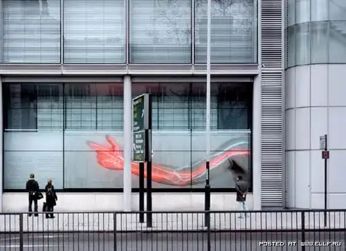 И они сделали его, да еще как сделали! Они соорудили макет светящейся руки, которая проходит поперек практически всей длины здания. Рука сделана из необычного материала, что позволяет ей меняться от прозрачной до непрозрачной. С помощью лишь щелчка выключателя рука вспыхивает ярким светом, и ее вены просвечиваются насквозь! Это не то, чтобы жутко, но несколько необычно. А еще достаточно зловеще это выглядит в темное время суток… Ох, мурашки по коже!
