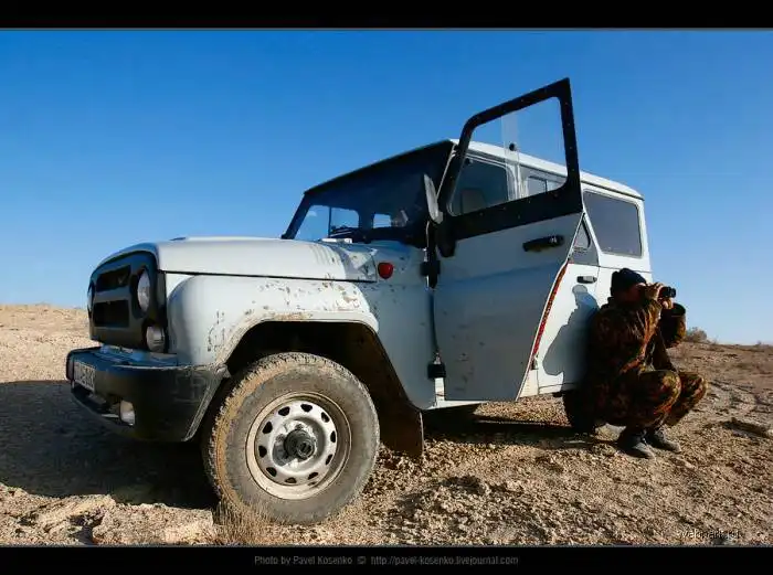 Ничто человеческое не чуждо природной красоте сурового края. Несмотря на то, что на Устюрте можно неделями не встретить ни одной живой души, нам удалось ни разу не воспользоваться палатками. Мы стремились к этому, потому что погода оказалась -0-10 вместо ожидаемых +0+5 градусов Цельсия. Релейки (радиорелейные станции) располагаются каждые 50 км и раньше служили для передачи эфирного сигнала в далёкие сёла. С развитием спутникового телевидения и исчезновением поселений на Устюрте эти чуда современной техники давно перестали действовать. Почти все они необитаемы, за исключением нескольких, которые переделаны под спецнужды - как правило, это охрана газопровода. Ближайшая со стороны Нукуса релейка на Устюртском плато имеет номер 16, здесь нас и приютил сторож в первую ночь нашей экспедиции. В последующие дни мы добрались почти до 21-ой релейки (обитаема оказалась ещё только 19-ая, хотя на релейках мы больше не ночевали). В целом за 4 дня по Устюрту мы проехали на джипах порядка 1000 км.