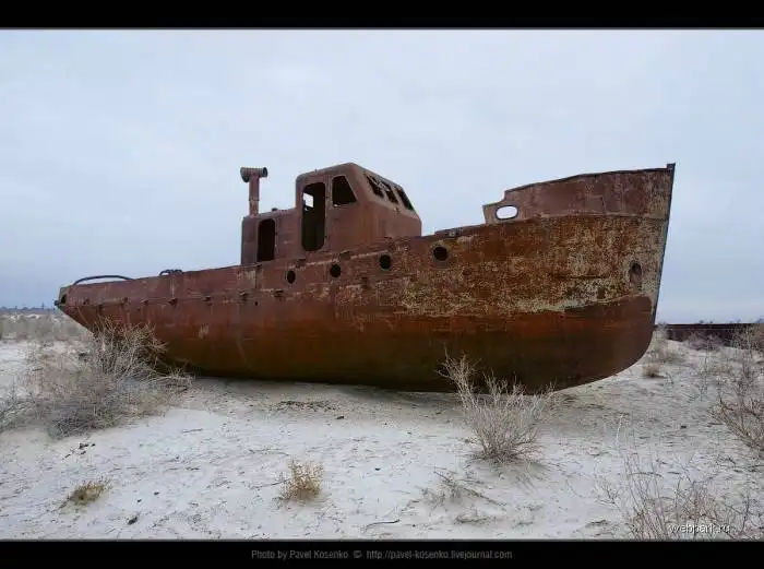 До 1960-х годов город Муйнак был портом на одноимённом острове и добраться сюда можно было либо по морю, либо на самолёте. Говорят, за первую ночь обмеления вода разом ушла на 200 метров. Утром того дня люди бежали за морем и плакали. Со временем пытались рыть канал от порта до берега, однако вода уходила быстрее строительства. Сегодня до моря отсюда больше 100 км. Чем занимается нынешнее население, для меня осталось загадкой, но именно здесь я увидел Аральскую трагедию. На Устюрте, вдали от людей, происходящее воспринимается скорее как естественный процесс. Есть научные доказательства тому, что Арал мелел и наполнялся неоднократно, еще задолго до того, как здесь поселился человек (хотя сегодняшнее падение уровня моря, конечно, не обошлось без его участия). Но там, где этот процесс нарушил устоявшееся течение жизни, сломал людские судьбы - это выглядит действительно как трагедия.