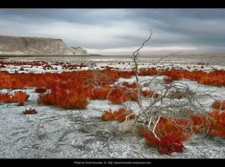 Погода была пасмурная и промозглая. Вообще экспедиции на Устюрт редки сами по себе, а в конце ноября тем более. Возможно, вы видите одни из редких снимков озера Судочье в это время года.