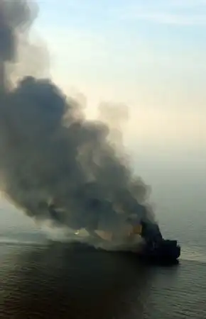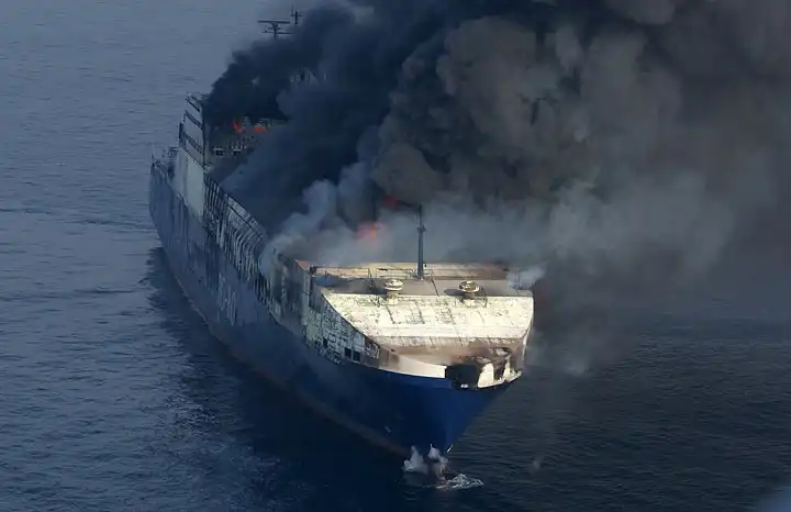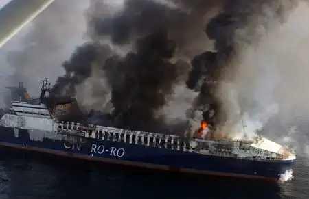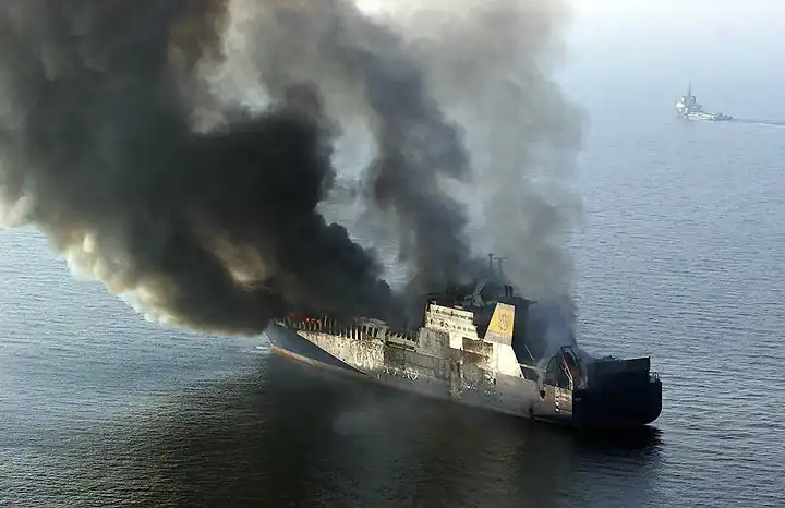 У берегов Хорватии горит грузовое судно UND Adriyatik с девятью тоннами какой-то опасной дряни, двумя сотнями грузовиков и сотней тонн горючего на борту. 22 члена экипажа и 9 пассажиров были эвакуированы греческим судном Ikarus Palace и сейчас находятся на пути в Венецию.