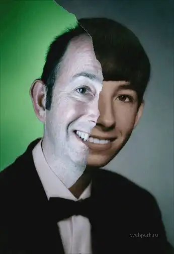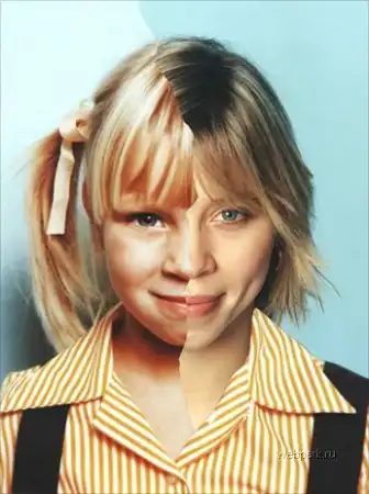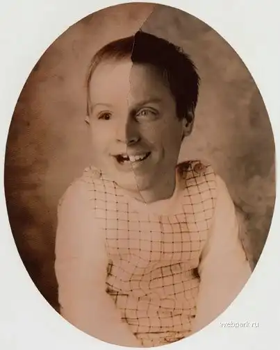 Фотографии состоят из 2-х частей: 1- фото взрослого человека, а 2- принадлежит этому же человеку, но будучи еще ребенком.