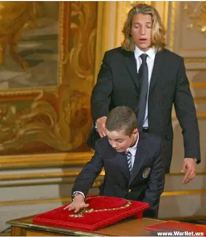 Луи Саркози, сын нового президента Франции, обживается на новом месте. Он решил потрогать главную награду Франции - цепь Грандмастера ордена Почетного легиона во ремя церемонии вступления в должность отца в Елисейском дворце в Париже. Его старший брат Пьер попытался остановить его.