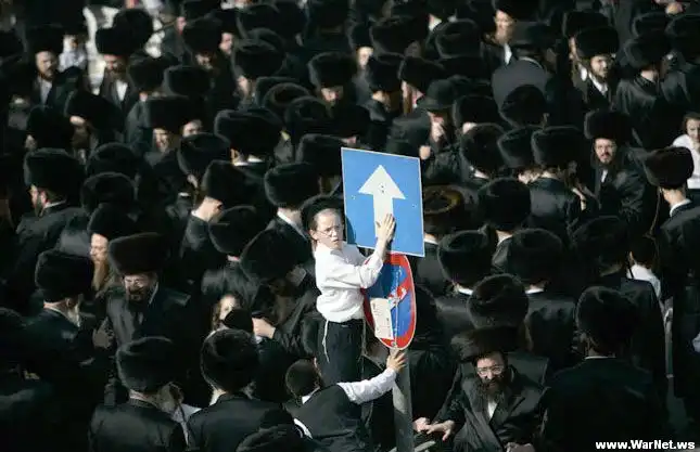 Массовая молитва ортодоксальных иудеев на улице в Иерусалиме.