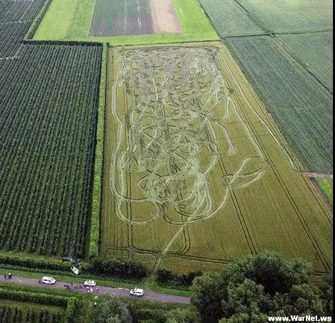 Следы от погони на поле в Голландии, около города Дюссен. Гнались полицейские за водителем, у который подозрительно себя вел, как оказалось потому что перевозил (и скорее всего, употреблял) кокаин
