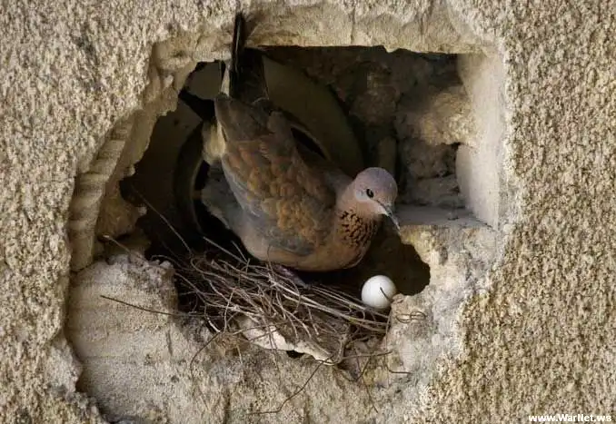 Гнездо птицы в пробоине от снаряда в Бейруте, Ливан