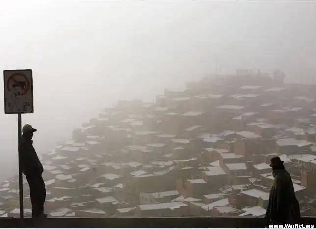 Автобусная остановка в городе Ла Паз, Боливия. Недавно в этих районах температура упала до минусовой и прошли снежные бури