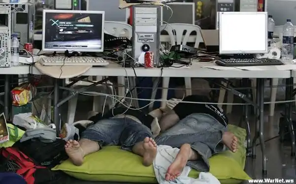 Юзеры отдыхают после вечеринки во время Campus Party, мероприятия в котором участвует более чем 6 000 юзеров. Валенсия, Испания