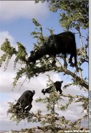 25 мая козлы залезли на дерево Argan в поисках горьких фруктов рядом с местечком Тарудант в Марокко. Разновидность этого дерева растет в полупустынной области на юго-западе Марокко. Деревья могут вырастать больше чем 30 футов высотой и жить до 200 лет.
