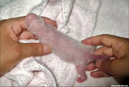 Исследователь держит недавно рожденного мужского детёныша панды в 4.3 дюйма длиной, в Research Base for Giant Panda Breeding in Chengdu, Китае